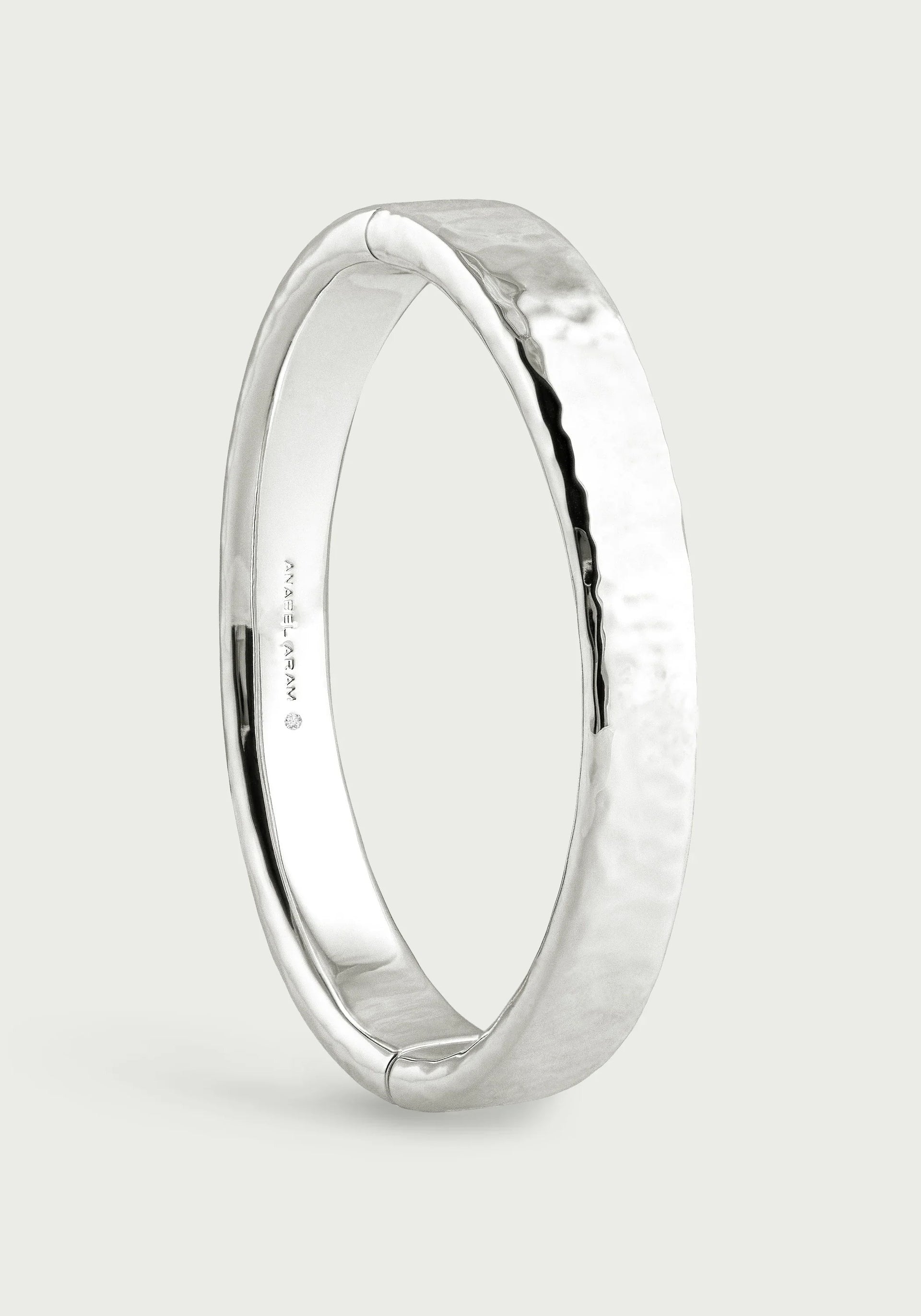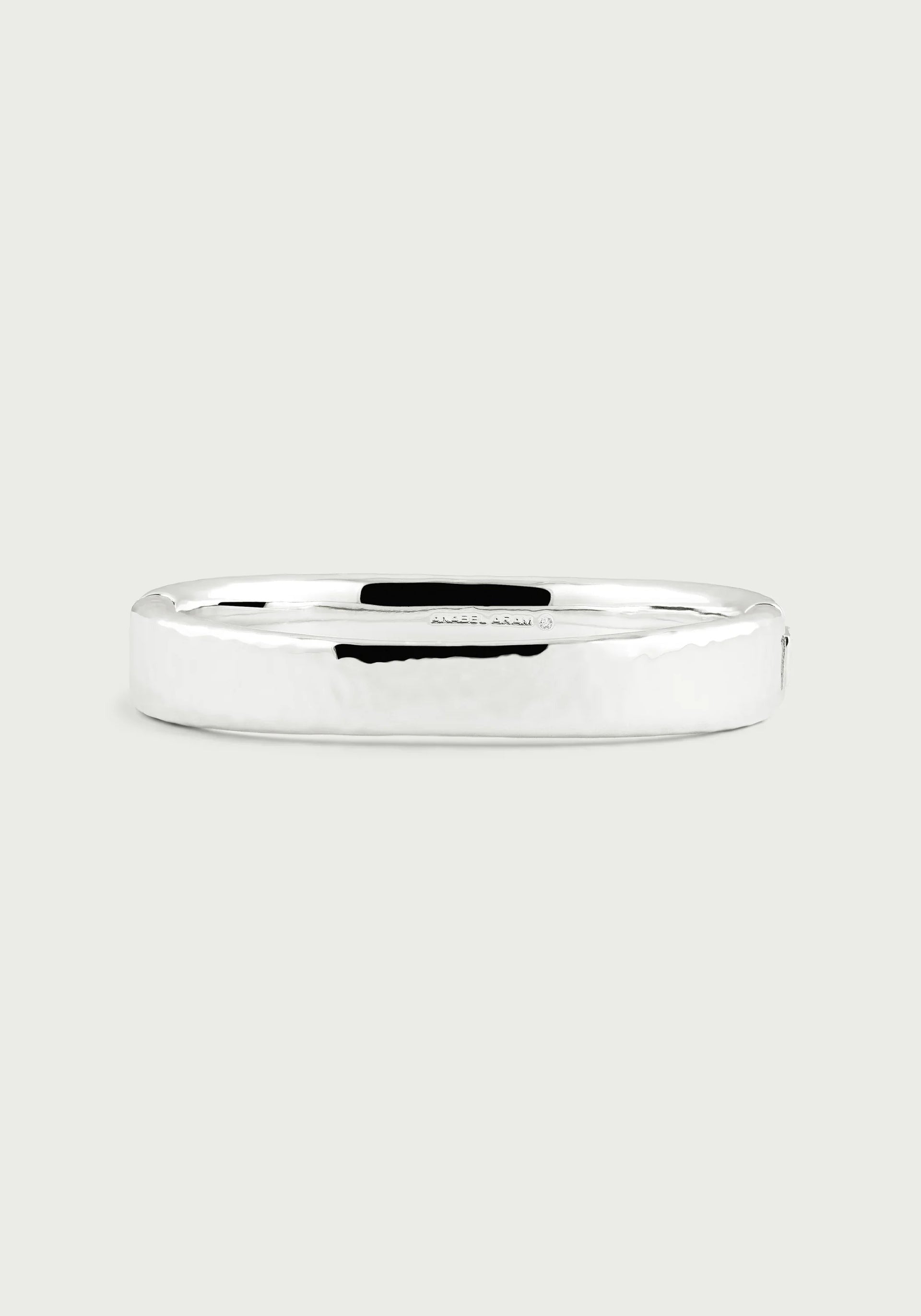 This modern and minimalist Farrier Wide Hinged Bangle in sterling silver plated brass, adds a timeless and classic touch to any outfit. Its hinged design makes it easy to wear and stack with other bracelets, while the hammered texture adds a statement element. Elevate your style effortlessly with this versatile piece.