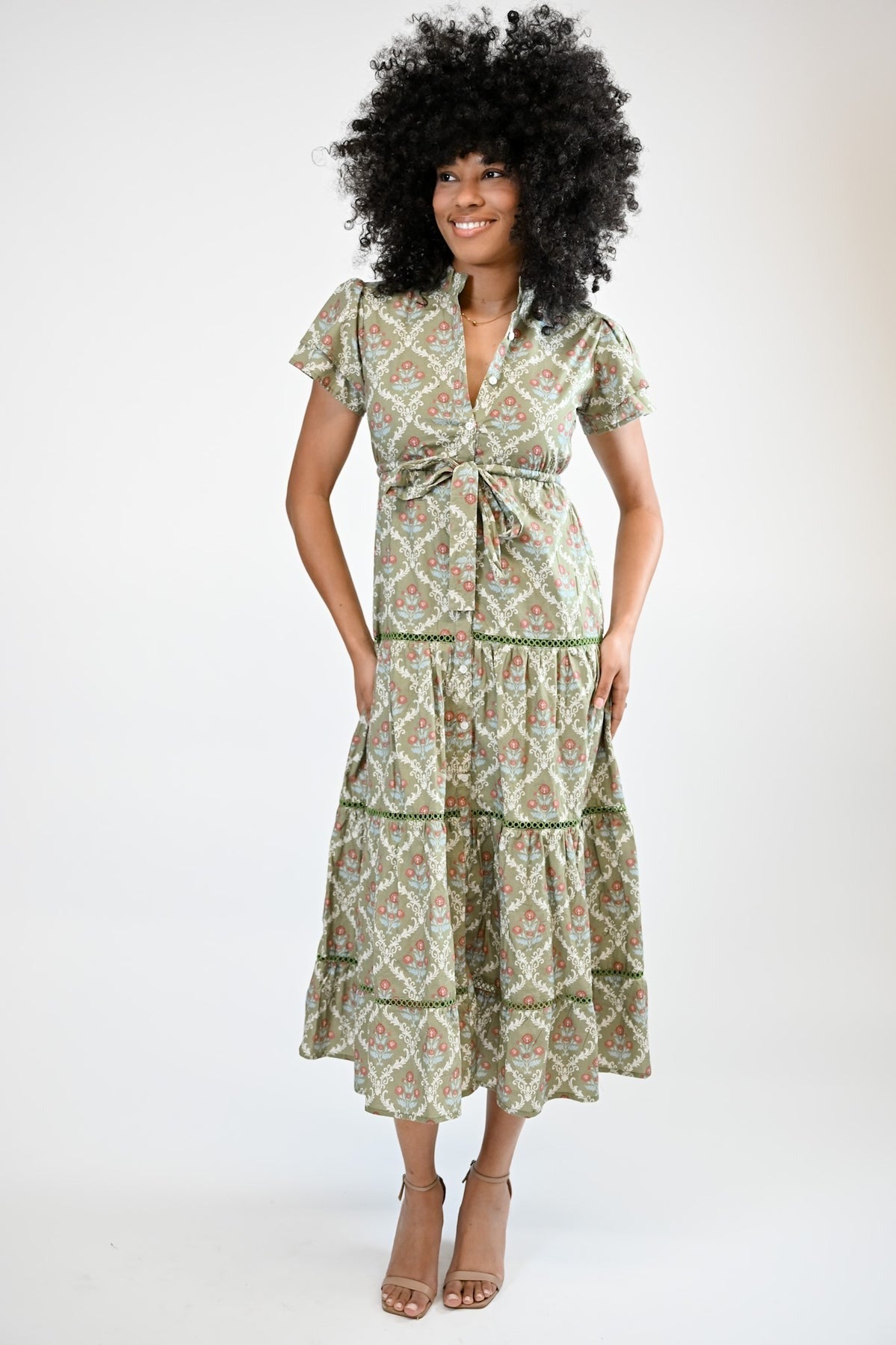 The Hurley features a drawstring waist, tiered skirt, and a functional button front. The double flutter sleeves are the perfect accent to this wardrobe staple.