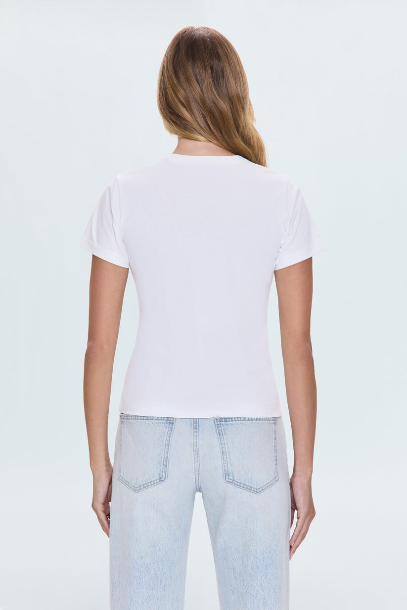 Simplify your style with the Alba Tee. This isn't just another basic – it's your new favorite essential, crafted from a rich and premium fabric that elevates your everyday look. The waist-hitting length ensures a flattering fit with all your favorite bottoms, from skirts to jeans. Layer it, tuck it, or wear it solo – the Alba Tee is designed for effortless versatility. Perfect for the woman who appreciates classic style with a modern edge, you'll find yourself reaching for this tee again and again.